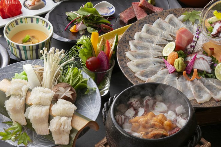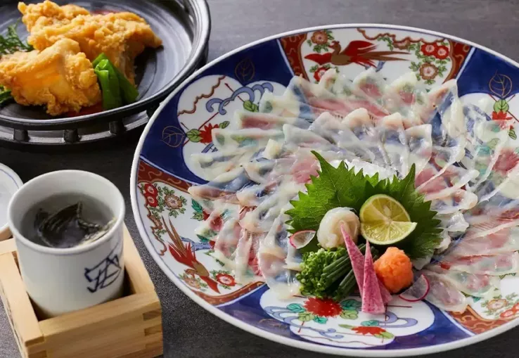 A high-end delicacy from the sea is Awaji Island three-year Japanese pufferfish. Farm-raised pufferfish are typically only nurtured for two years. However, this special type of pufferfish is carefully raised for an additional year. The resulting fish is bigger, has a more satisfying chew, and offers a deeper taste.