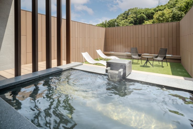 For a truly indulgent stay, consider booking a guest room with a private open-air hot spring bath. These luxurious room types feature spacious terraces with grassy areas. You can also enjoy the natural hot spring “Ogurayama Onsen” 24 hours a day, without leaving your room. Without time constraints or concerns about privacy, you can unwind at your own pace. Rest in the steaming water and feel your whole body relax. The terrace and open-air bath are especially charming at night as they grant unobstructed views of the starry night sky.
