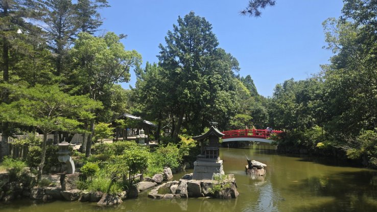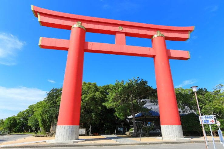 Onokorojima Shrine is one of the places where Onokorojima Island is said to have existed—the island that the Shinto deities first formed before creating Awaji Island. The shrine’s 21.7-meter-tall vermilion torii gate immediately draws you in with its eye-catching presence. Similar to Izanagi Shrine, many people visit this shrine for good fortune in matchmaking and childbirth.