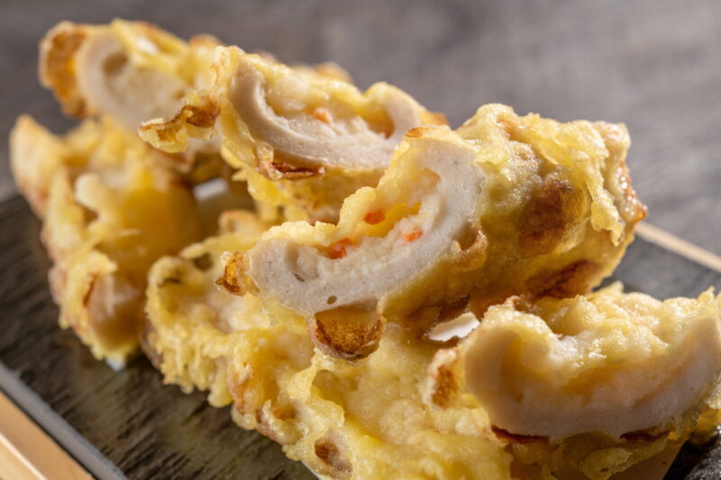 Chikuwa Potato Salad: For this popular home-style Kumamoto dish, chikuwa (tube-shaped fish cakes) are filled with potato salad and deep-fried as tempura, creating a uniquely local side dish.