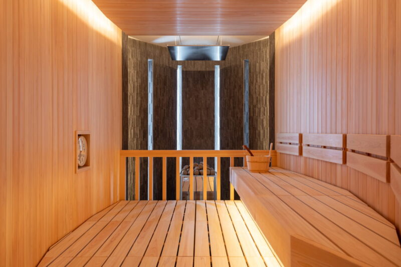 For a satisfying sweat, unwind in the dry sauna and its corresponding relaxation space.