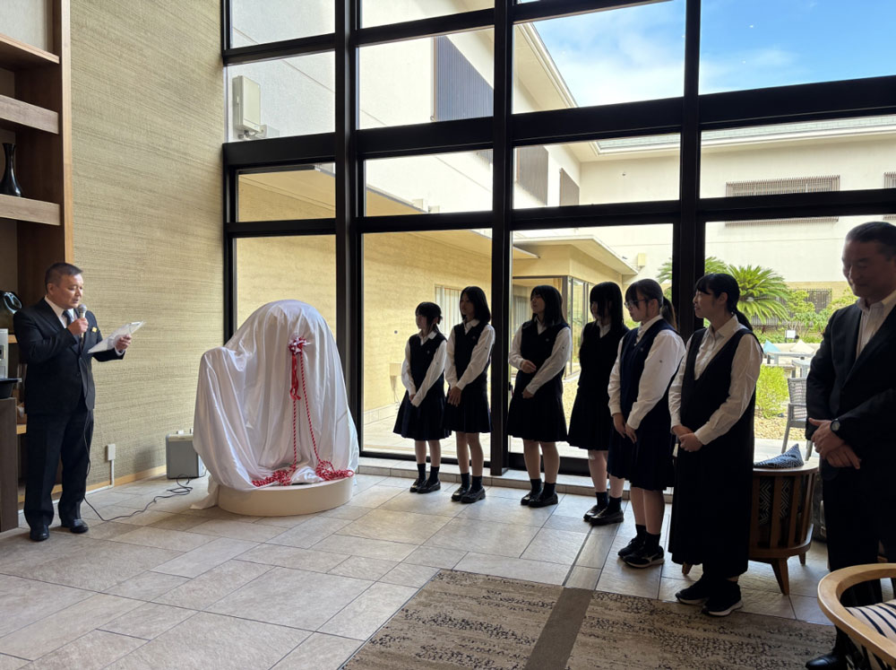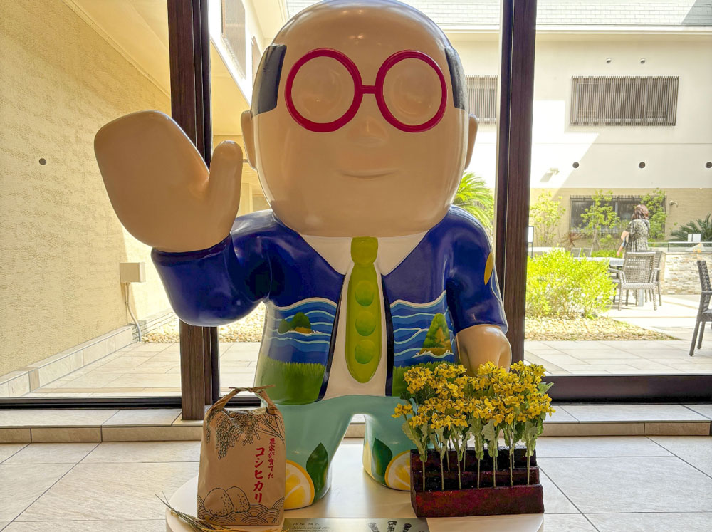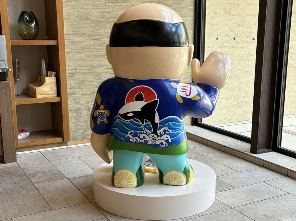 熊八龟之井酒店 鸭川雕像由长Chiba高中美术部设计和绘制,并于2025年10月5日返回酒店。 请查看由一位年轻感性创作的本地设计“熊八雕像”细节。