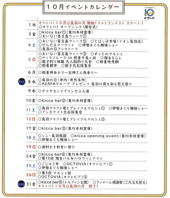 Fireworks are also planned for Toba Day on October 8th and the finale on October 31st!