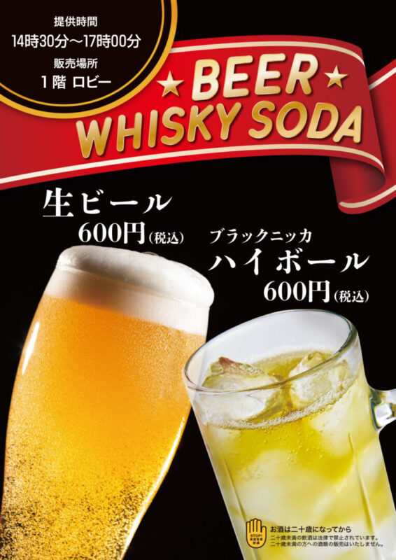 大人の方には、キンキンに冷えた「生ビール」または「ハイボール」はいかがでしょうか?