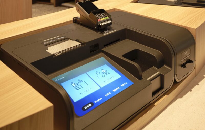 이번 저희 호텔에서는 고객의 편리성 향상과 대기 시간 단축을 위해 새롭게 「자동 체크인기」를 도입했습니다.