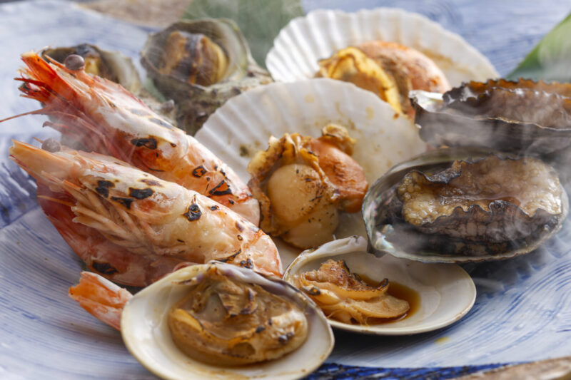 ★ 저녁으로는 계절 산 바다의 진미 가이세키을 즐길 수 있습니다. 이 계획에는 5가지 구운 해산물과 1인당 1세트가 포함되어 있습니다. (성인 전용)