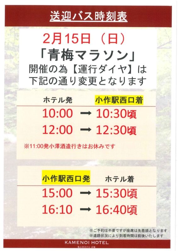 2月15日(日)の青梅マラソン開催に伴う交通規制により