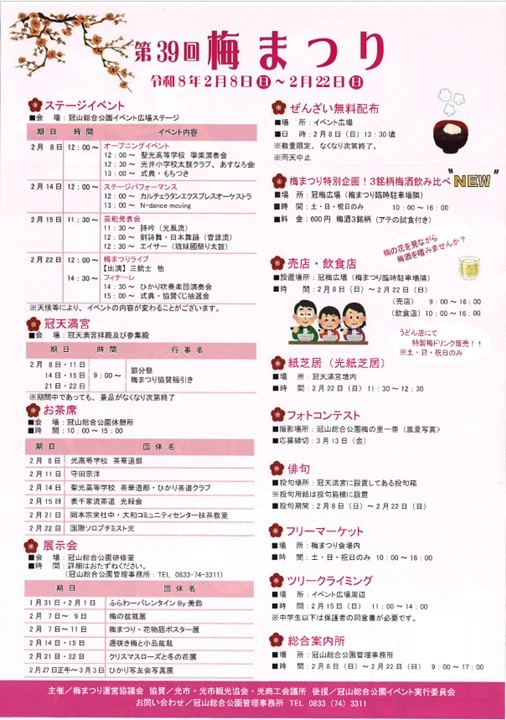 今年の「第39回梅まつり」は、2月8日(日)から2月22日(日)までです。