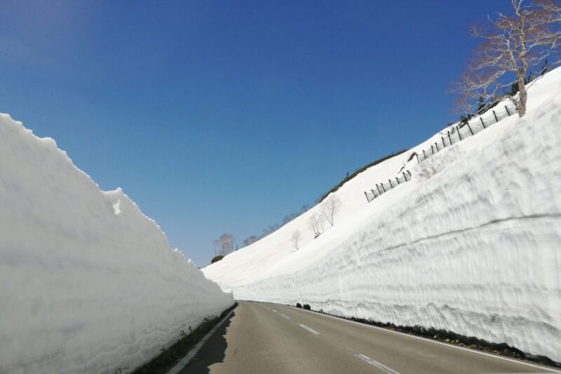 道路両脇に数メートルの雪の回廊がお楽しみ頂けます。