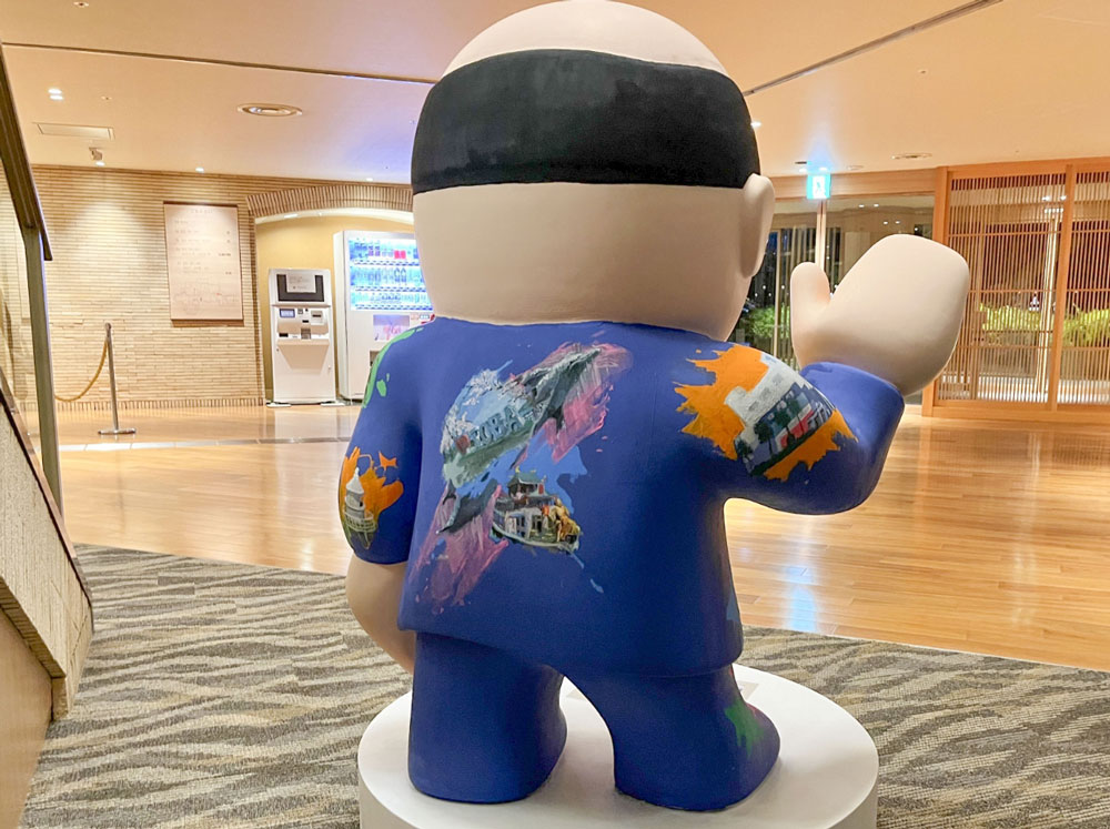 亀の井ホテル 鳥羽の「熊八像」は、三重県立鳥羽高等学校 美術部の皆様にデザイン、ペイントをしていただき、2025年7月15日にホテルへ帰ってきました。若い感性が描いたご当地デザインの「熊八像」を細部までご覧ください。