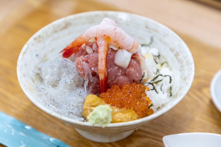 Here, you can satisfy your appetite with sushi, seafood rice bowls, and other casual “ocean lunches” that are unique to Yaizu. The bustling ambience,