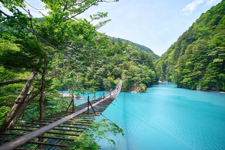 Deep in the mountains of Kawanehoncho Town, north of Yaizu and Shimada, the Sumatakyo Yume no Tsuribashi suspension bridge, leads you into a surreal realm.