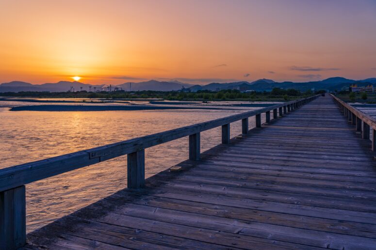 In Shimada, situated northwest of Yaizu, the Horai Bridge exudes a unique atmosphere reminiscent of the samurai era.