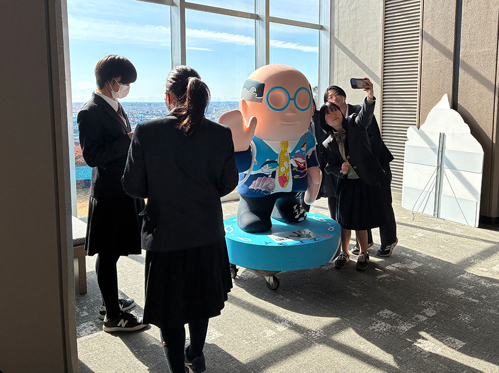 亀の井ホテル 焼津の「熊八像」は、静岡県立焼津中央高等学校 美術部の皆様にデザイン、ペイントをしていただき、2026年1月31日にホテルへ帰ってきました。若い感性が描いたご当地デザインの「熊八像」を細部までご覧ください。