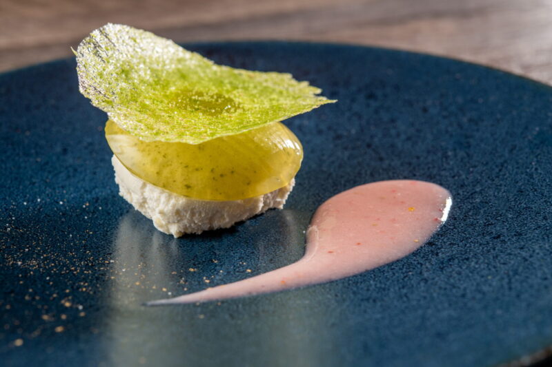 極薄の飴細工「オパリーヌ」、玉露のジュレ、 口の中で儚く溶けるクレメ・ダンジュ。